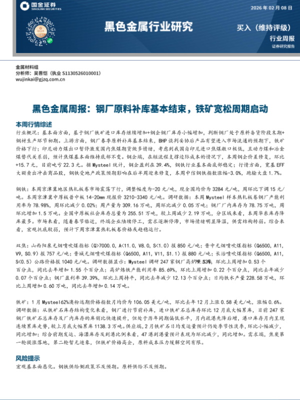 【国金证券】【202602】黑色金属周报-14页 证券期货研究报告