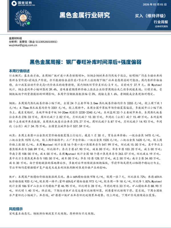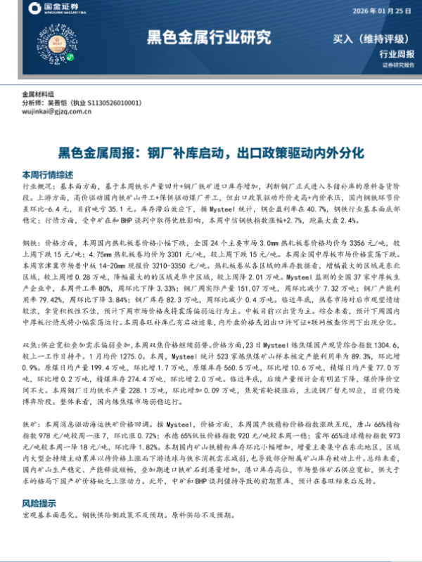【国金证券】【202602】2026年02月06日更新-【国金证券】黑色金属行业研究:钢厂补库启动,出口政策驱动内外分化.pdf-14页 证券期货研究报告