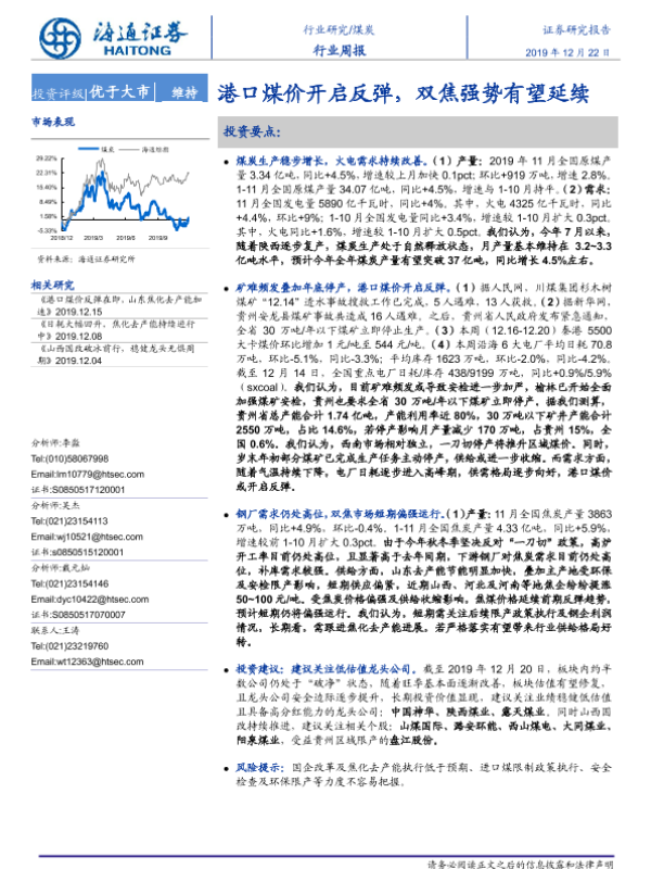 【海通证券】【20191222】20191222-海通证券-煤炭行业周报:港口煤价开启反弹,双焦强势有望延续-2页 行业研究