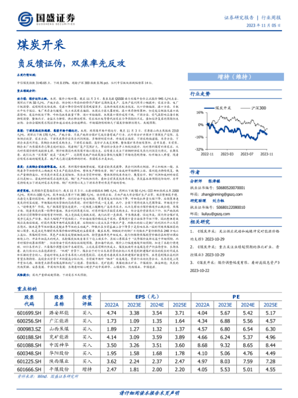 【国盛证券】【20231105】20231105-国盛证券-煤炭开采行业周报:负反馈证伪,双焦率先反攻-17页 行业研究