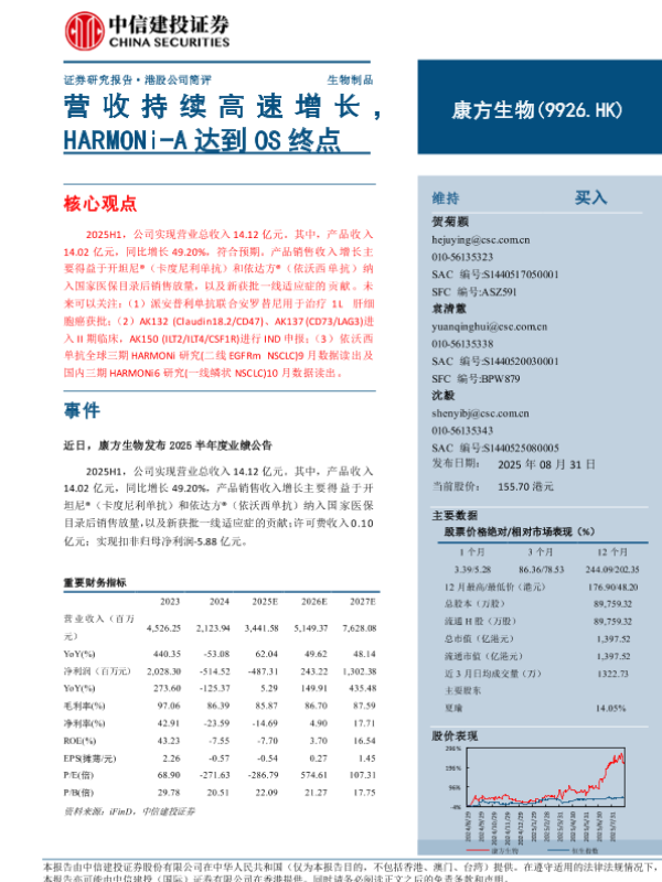【中信建投证券】【202508】康方生物营收持续高速增长,HARMONi-A达到OS终点-10页 证券期货研究报告
