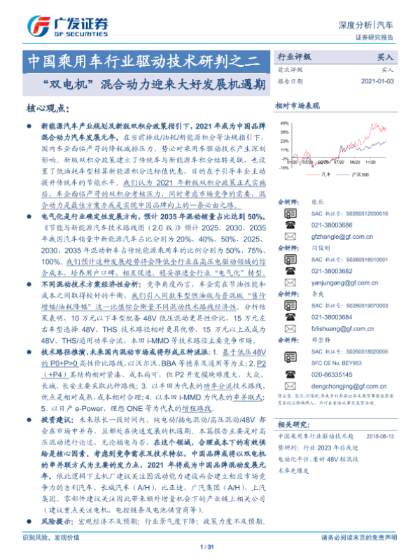【广发证券】【20210103】中国乘用车行业驱动技术研判之二:“双电机”混合动力迎来大好发展机遇期-31页 行业研究