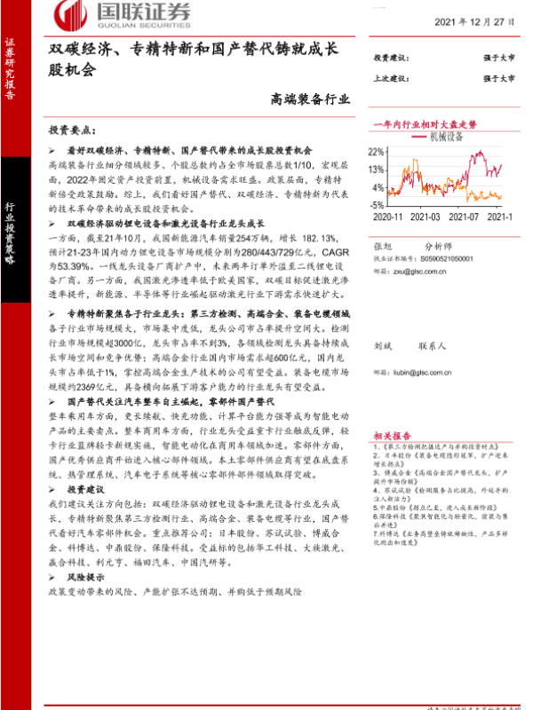 【国联证券】【20211227】高端装备行业:双碳经济、专精特新和国产替代铸就成长股机会-31页 证券期货研究报告