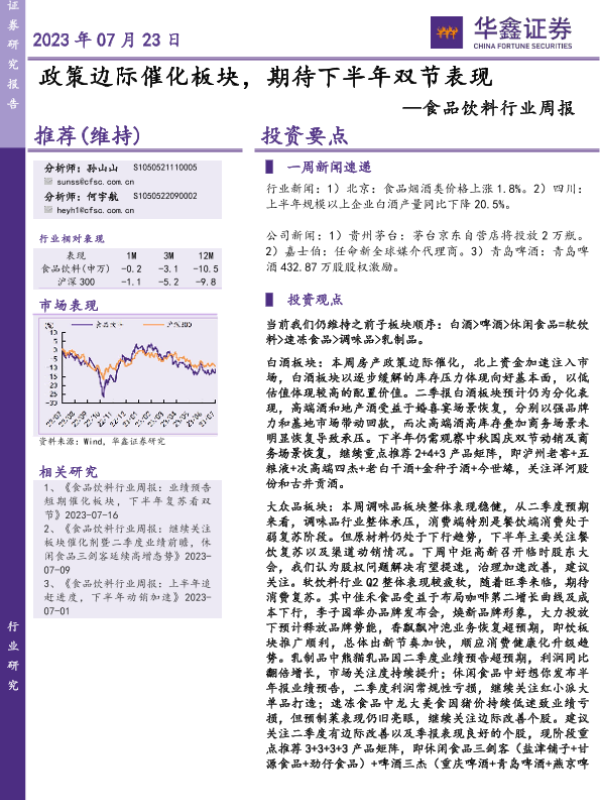 【华鑫证券】【20230723】20230723-华鑫证券-食品饮料行业周报:政策边际催化板块,期待下半年双节表现-25页 行业研究