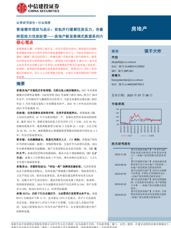 【中信建投证券】【20250706】香港楼市现状与启示:双轨并行缓解住房压力,存量转型助力优质经营-46页 证券期货研究报告