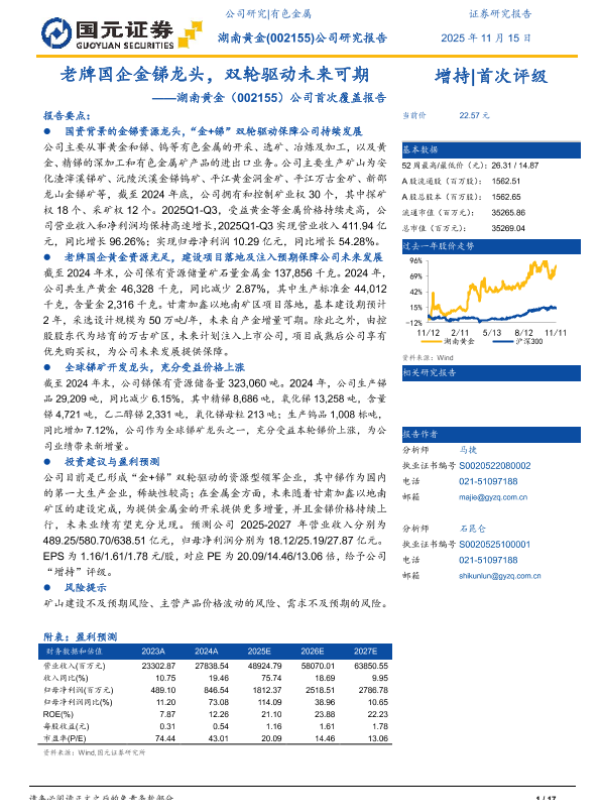 【国元证券】【2025】企金锑龙头,双轮驱动未来可期-17页 证券期货研究报告