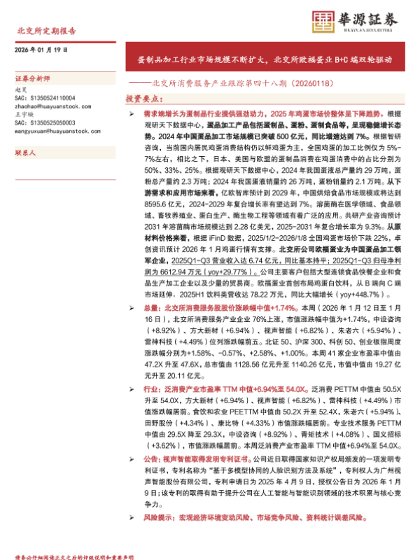 【华源证券】【202601】北交所消费服务产业跟踪第四十八期(20260118):蛋制品加工行业市场规模不断扩大,北交所欧福蛋业B+C端双轮驱动-19页 证券期货研究报告
