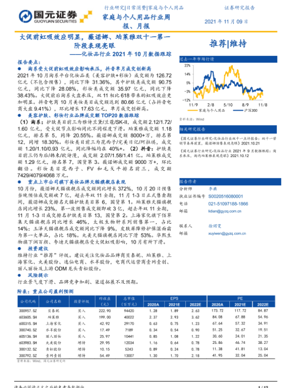 【国元证券】【20211109】大促前虹吸效应明显,薇诺娜、珀莱雅双十一第一阶段表现亮眼-12页 行业研究