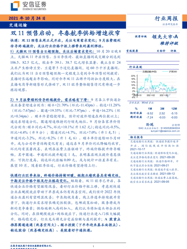 【安信证券】【20211024】双11预售启动,冬春航季供给增速收窄-17页 行业研究
