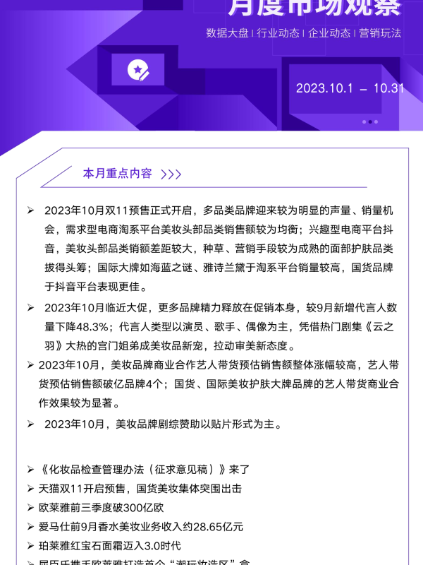 【艺恩】【202310】2023年10月美妆行业洞察报告-10页 行业研究