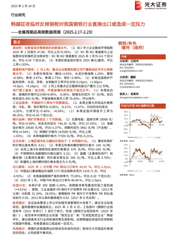 【光大证券】【20250224】金属周期品高频数据周报:韩越征收临时反倾销税对我国钢铁行业直接出口或造成一定压力-26页 行业研究