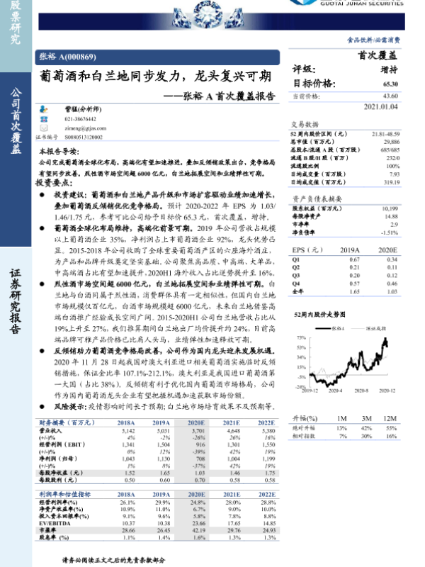 【国泰君安证券】【20210104】张裕A首次覆盖报告:葡萄酒和白兰地同步发力,龙头复兴可期-23页 行业研究