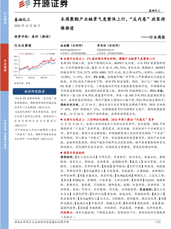 【开源证券】【202512】本周聚酯产业链景气度整体上行,“反内卷”政策持续推进-32页 证券期货研究报告