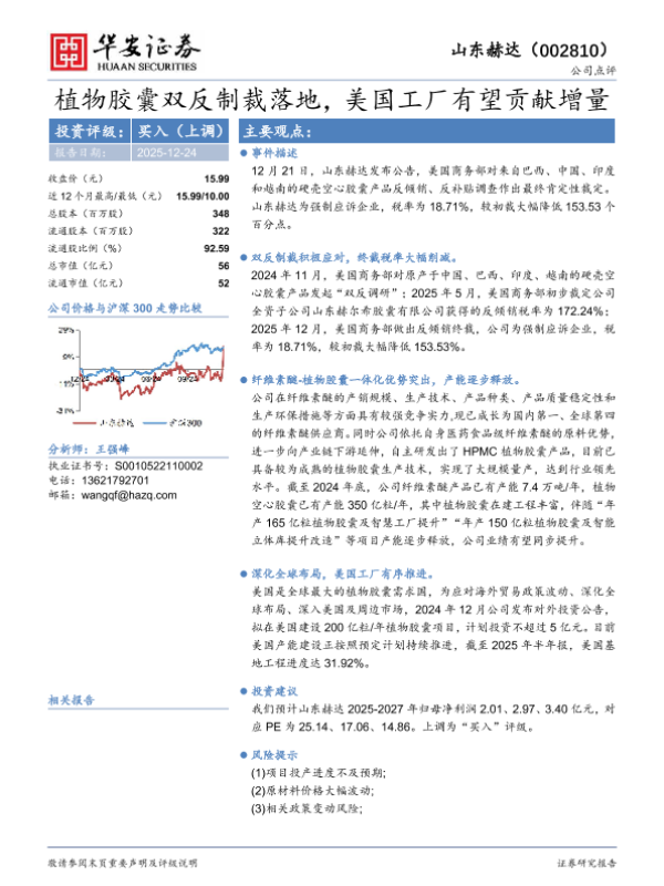 【华安证券】【202512】植物胶囊双反制裁落地,美国工厂有望贡献增量-4页 证券期货研究报告