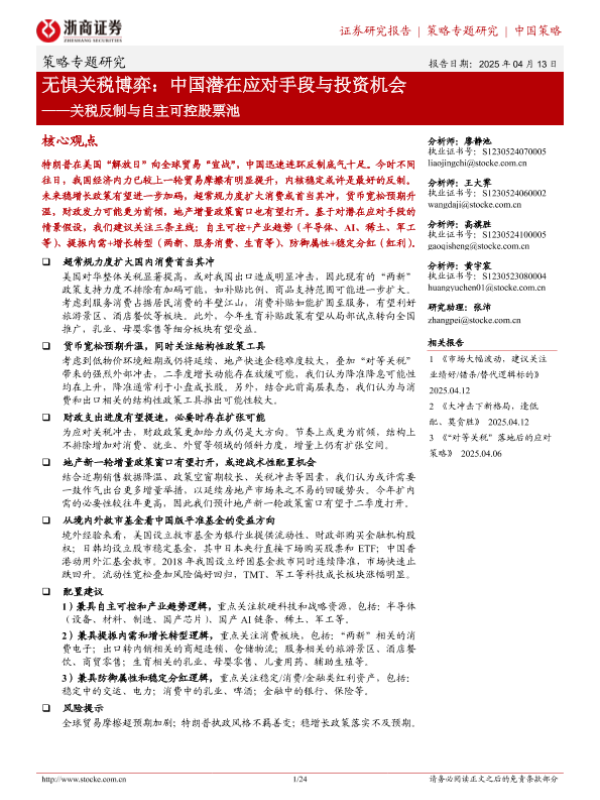 【浙商证券】【20250413】无惧关税博弈,中国潜在应对手段与投资机会-24页 宏观策略