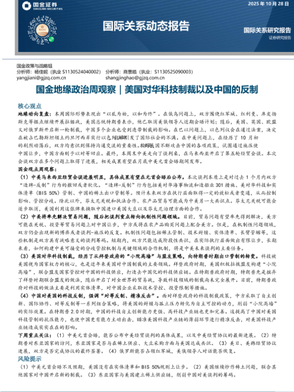 【国金证券】【202510】国金地缘政治周观察|美国对华科技制裁以及中国的反制-15页 证券期货研究报告