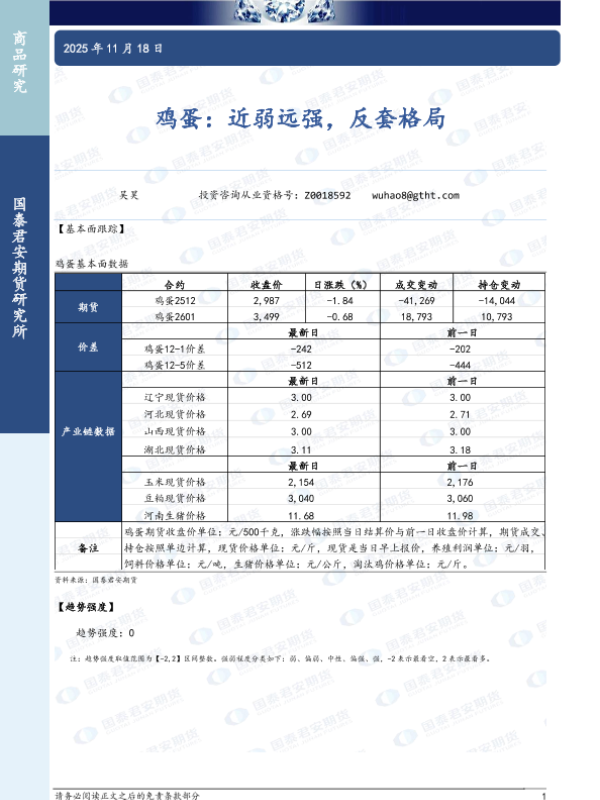 【国泰君安期货】【202511】鸡蛋:近弱远强,反套格局-2页 证券期货研究报告