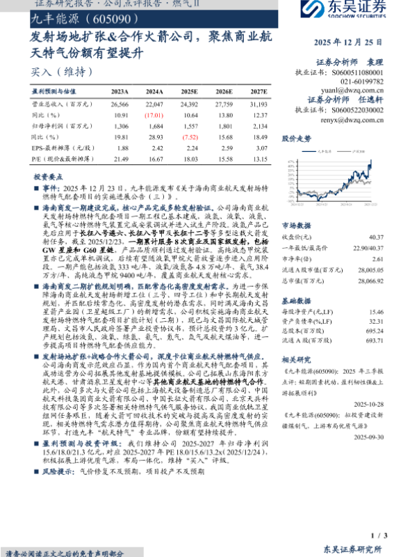 【东吴证券】【202512】发射场地扩张&合作火箭公司,聚焦商业航天特气份额有望提升-3页 证券期货研究报告