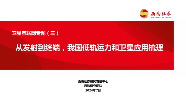 【西南证券】【20240731】卫星互联网行业专题(三):从发射到终端,我国低轨运力和卫星应用梳理-40页 行业研究
