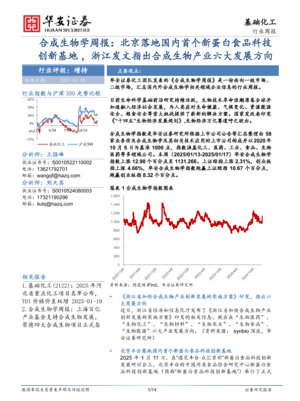 【华安证券】【20250120】合成生物学周报:北京落地国内首个新蛋白食品科技创新基地,浙江发文指出合成生物产业六大发展方向-14页 行业研究