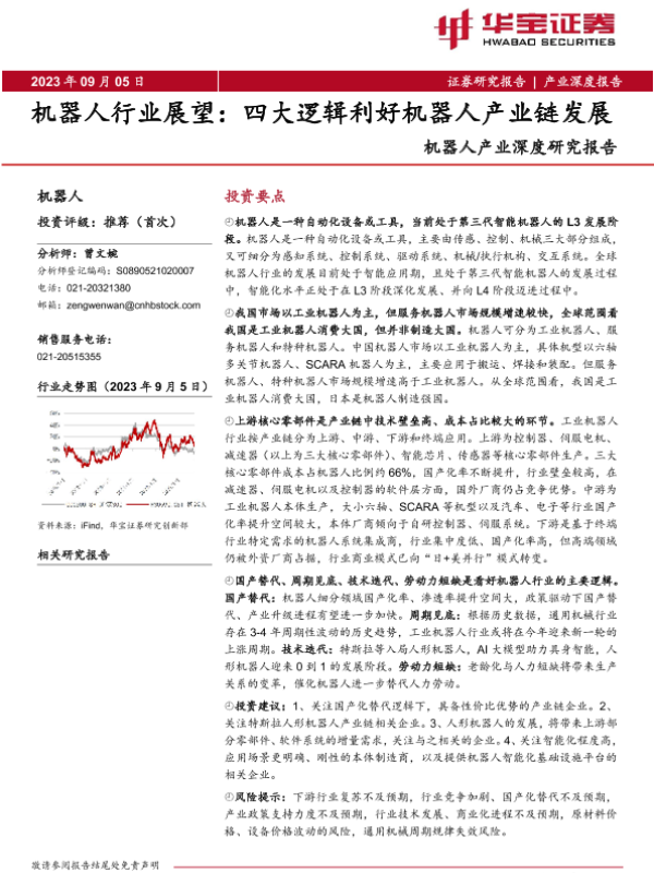 【华宝证券】【20230905】机器人行业展望:四大逻辑利好机器人产业链发展-53页 行业研究