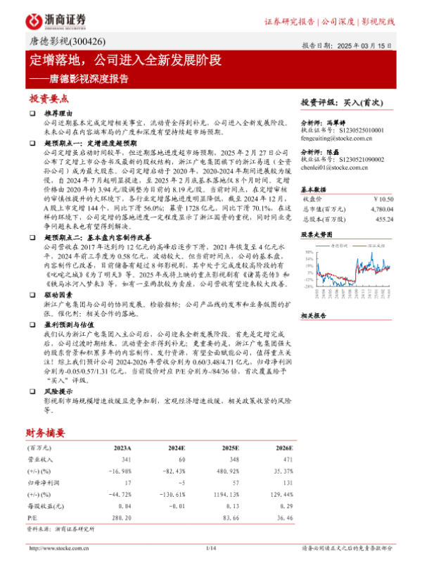 【浙商证券】【20250315】唐德影视深度报告:定增落地,公司进入全新发展阶段-14页 行业研究