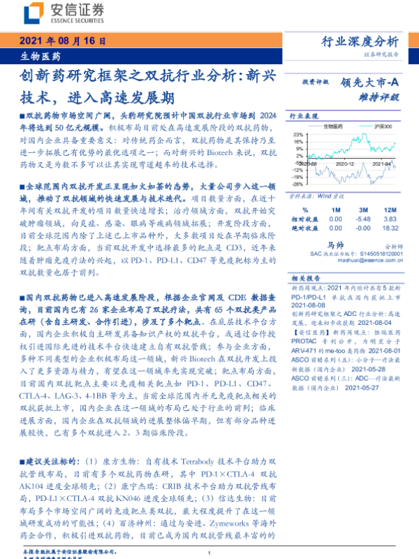 【安信证券】【20210816】创新药研究框架之双抗行业分析:新兴技术,进入高速发展期-35页 行业研究