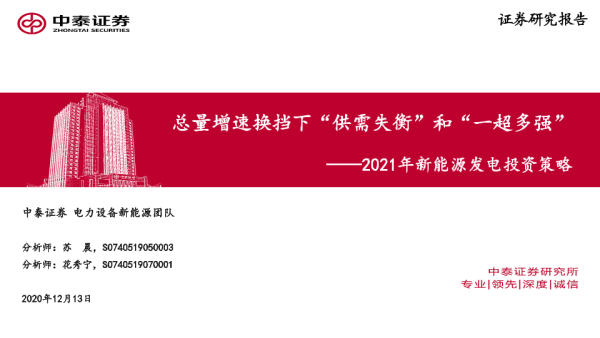 【中泰证券】【20201213】2021年新能源发电投资策略:总量增速换挡下“供需失衡”和“一超多强”-93页 行业研究