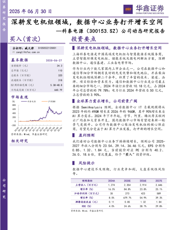 【华鑫证券】【20250630】深耕发电机组领域_数据中心业务打开增长空间-4页 公司研究