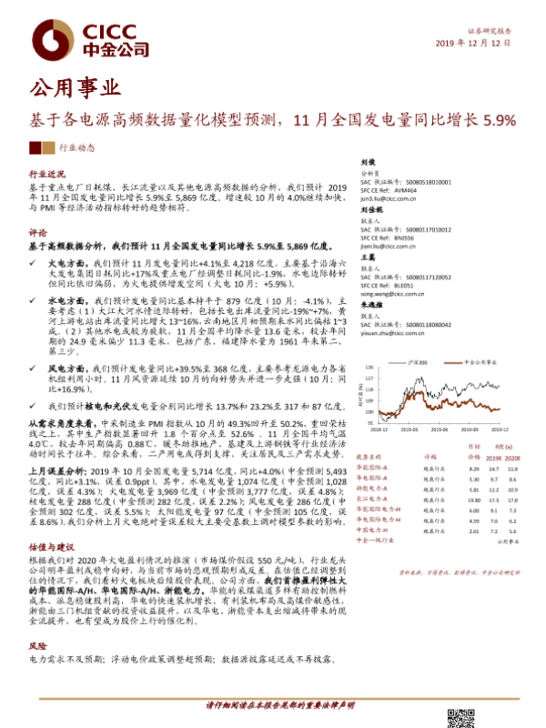 【中金公司】【20191212】基于各电源高频数据量化模型预测,11月全国发电量同比增长5.9%-8页 行业研究