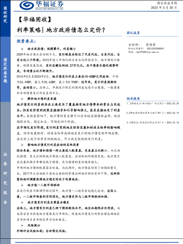 【华福证券】【20230320】利率策略地方政府债怎么定价?-23页 行业研究