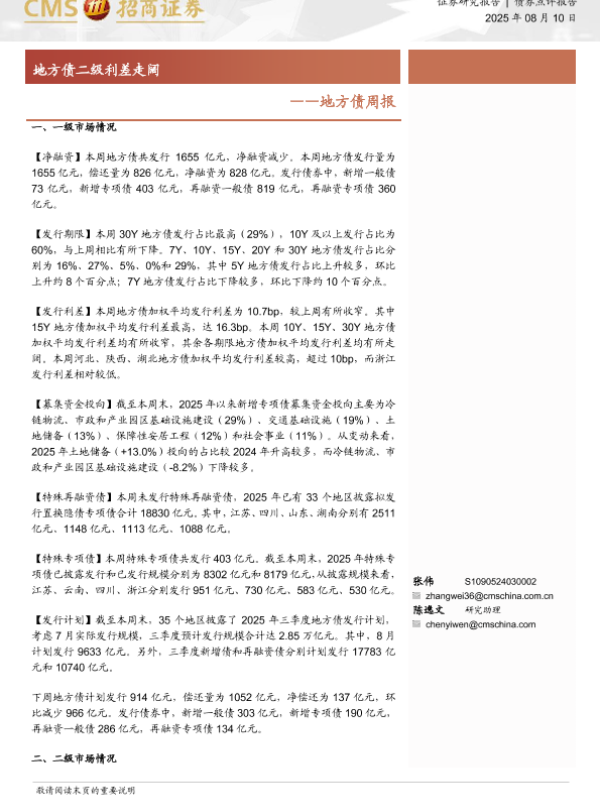 【海通证券】【20250810】地方债周报:地方债二级利差走阔-13页 证券期货研究报告