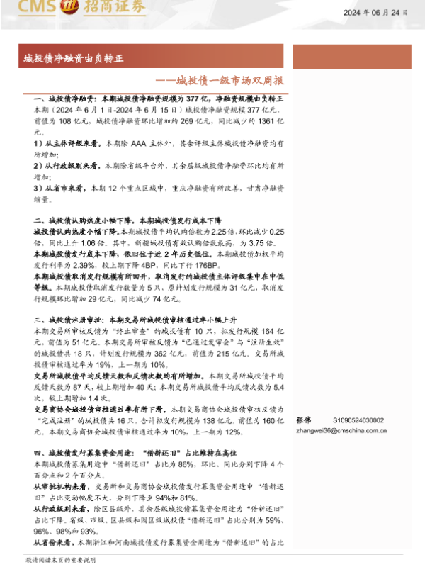 【海通证券】【20240624】城投债一级市场双周报:城投债净融资由负转正-14页 行业研究