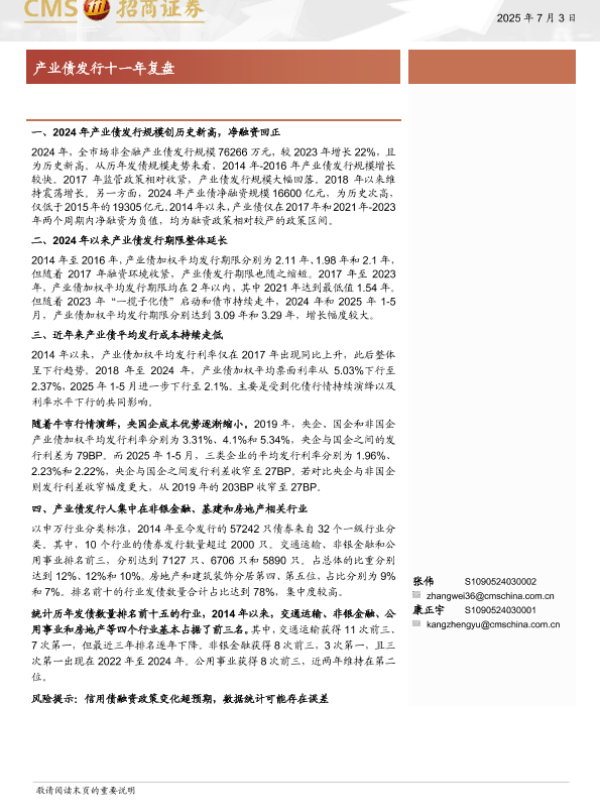 【海通证券】【20250703】产业债发行十一年复盘-12页 行业研究