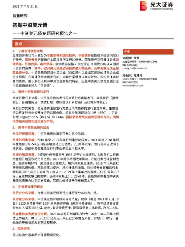 【光大证券】【20210721】中资美元债专题研究报告之一:初探中资美元债-17页 行业研究