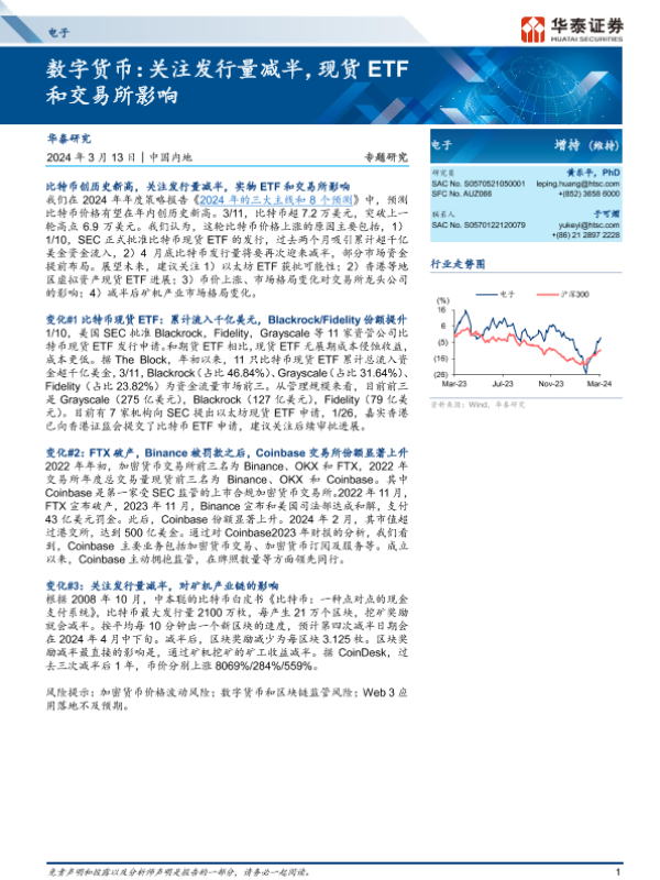 【华泰证券】【20240313】电子行业专题研究-数字货币:关注发行量减半,现货ETF和交易所影响-12页 行业研究