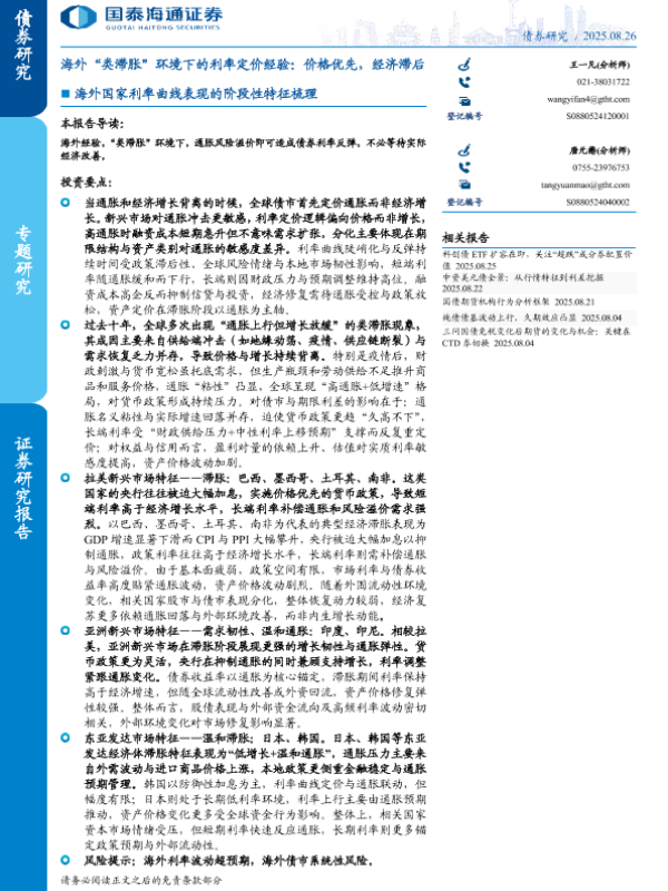 【国泰海通证券】【202508】海外“类滞胀”环境下的利率定价经验:价格优先,经济滞后-10页 证券期货研究报告