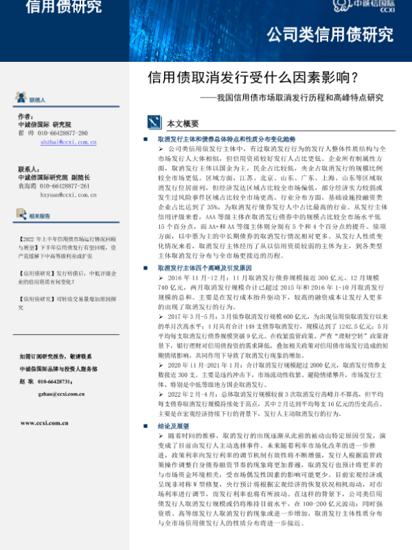 【中诚信国际】【2022】信用债取消取消发行受什么因素影响?-21页 行业研究