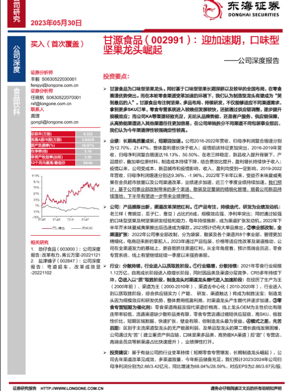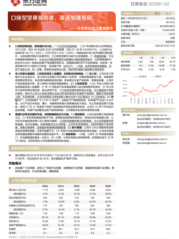 【东方证券】【20230313】甘源食品首次覆盖报告(002991):口味型坚果领跑者,渠道加速布局-34页 行业研究
