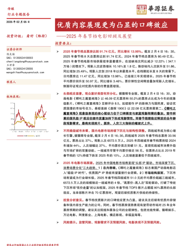 【华源证券】【20250205】2025年春节档电影回顾及展望-优质内容展现更为凸显的口碑效应-16页 行业研究