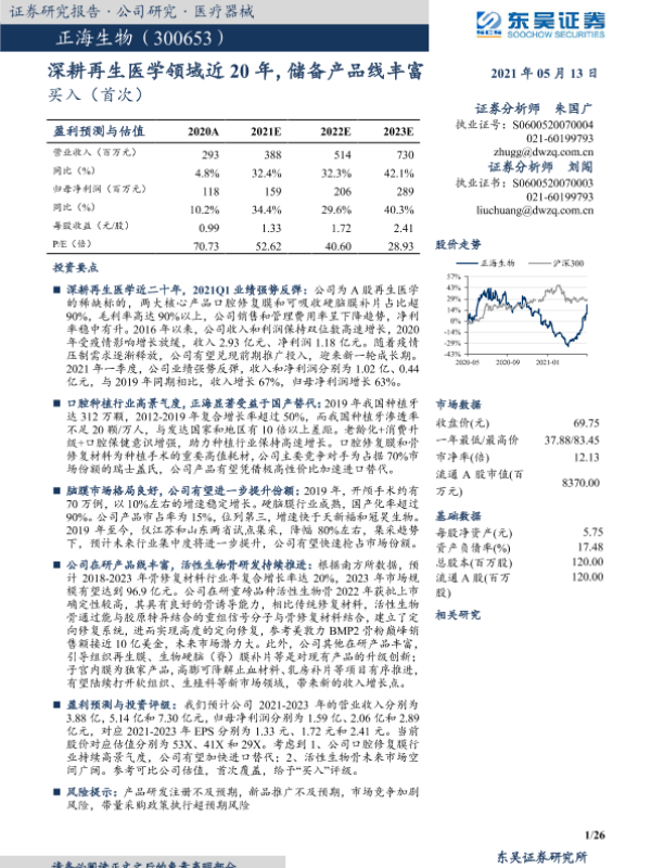 【东吴证券】【20210513】深耕再生医学领域近20年,储备产品线丰富-26页 行业研究