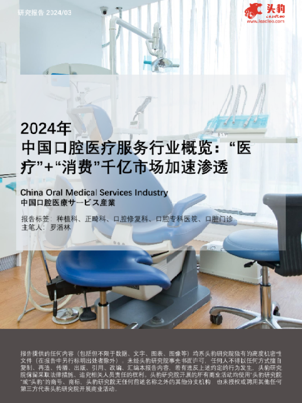 【头豹研究院】【202403】2024年中国口腔医疗服务行业概览-“医疗”+“消费”千亿市场加速渗透-20页 行业研究