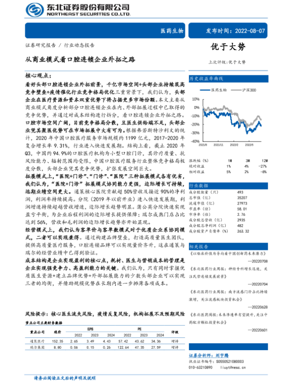 【东北证券】【20220807】从商业模式看口腔连锁企业外拓之路-27页 行业研究