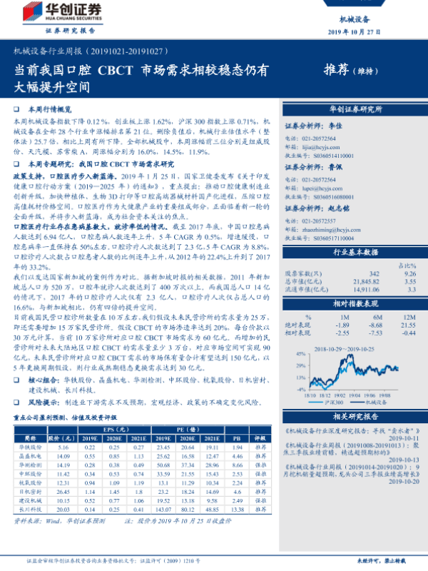 【华创证券】【20191027】20191027-华创证券-机械设备行业周报:当前我国口腔CBCT市场需求相较稳态仍有大幅提升空间-18页 行业研究
