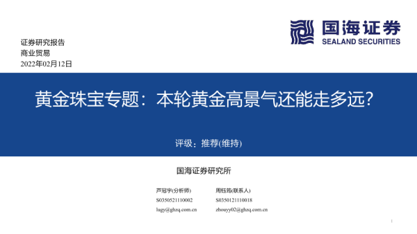 【国海证券】【20220212】黄金珠宝专题:本轮黄金高景气还能走多远?-32页 行业研究