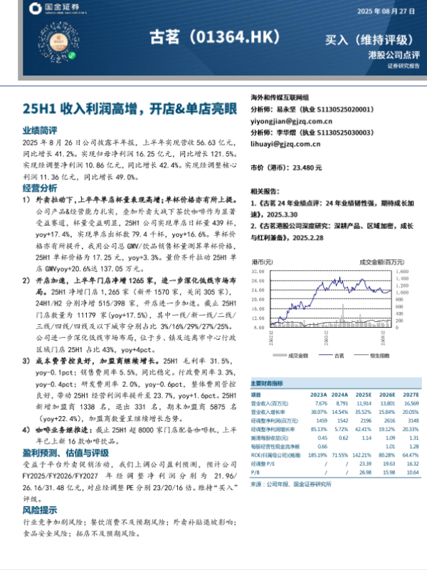 【国金证券】【20250827】古茗-01364.HK-25H1收入利润高增_开店_单店亮眼-4页 证券期货研究报告