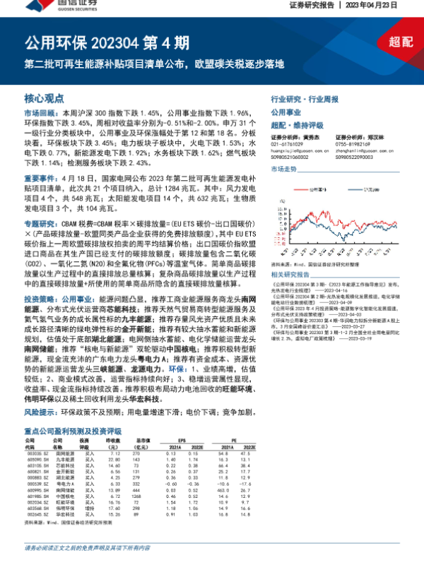 【国信证券】【20230423】第二批可再生能源补贴项目清单公布,欧盟碳关税逐步落地-29页 行业研究