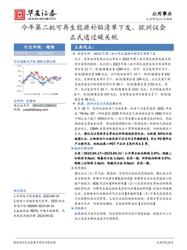 【华安证券】【20230423】今年第二批可再生能源补贴清单下发,欧洲议会正式通过碳关税-17页 行业研究
