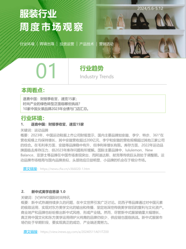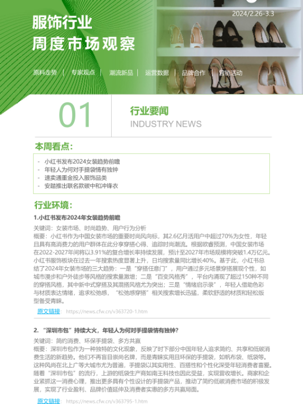 【艾瑞咨询】【20240303】2024年第6周:服饰行业周度市场观察-5页 行业研究