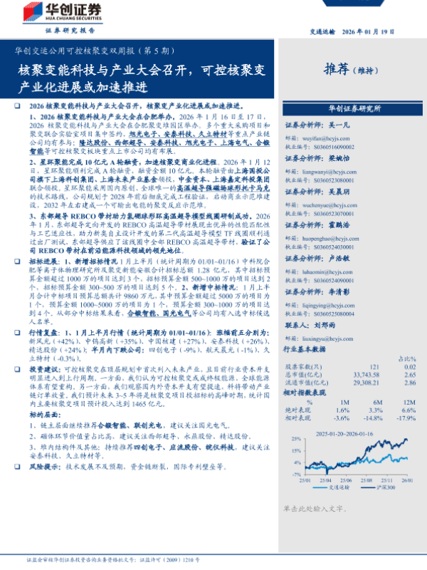 【华创证券】【202601】华创交运公用可控核聚变双周报(第5期)-11页 证券期货研究报告